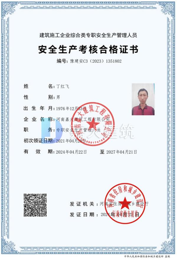 丁红飞合格证书