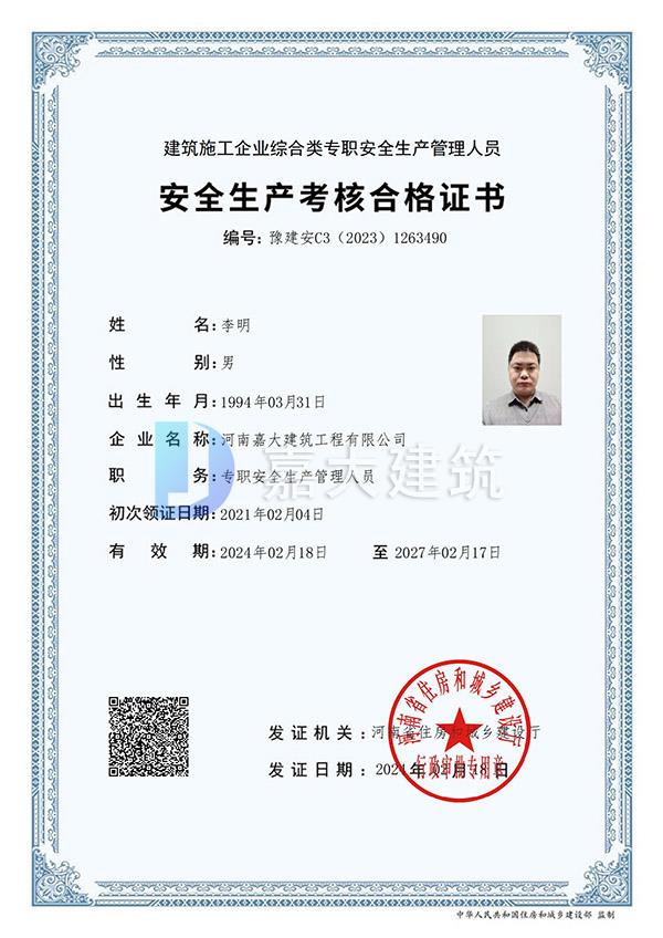 李明合格证书